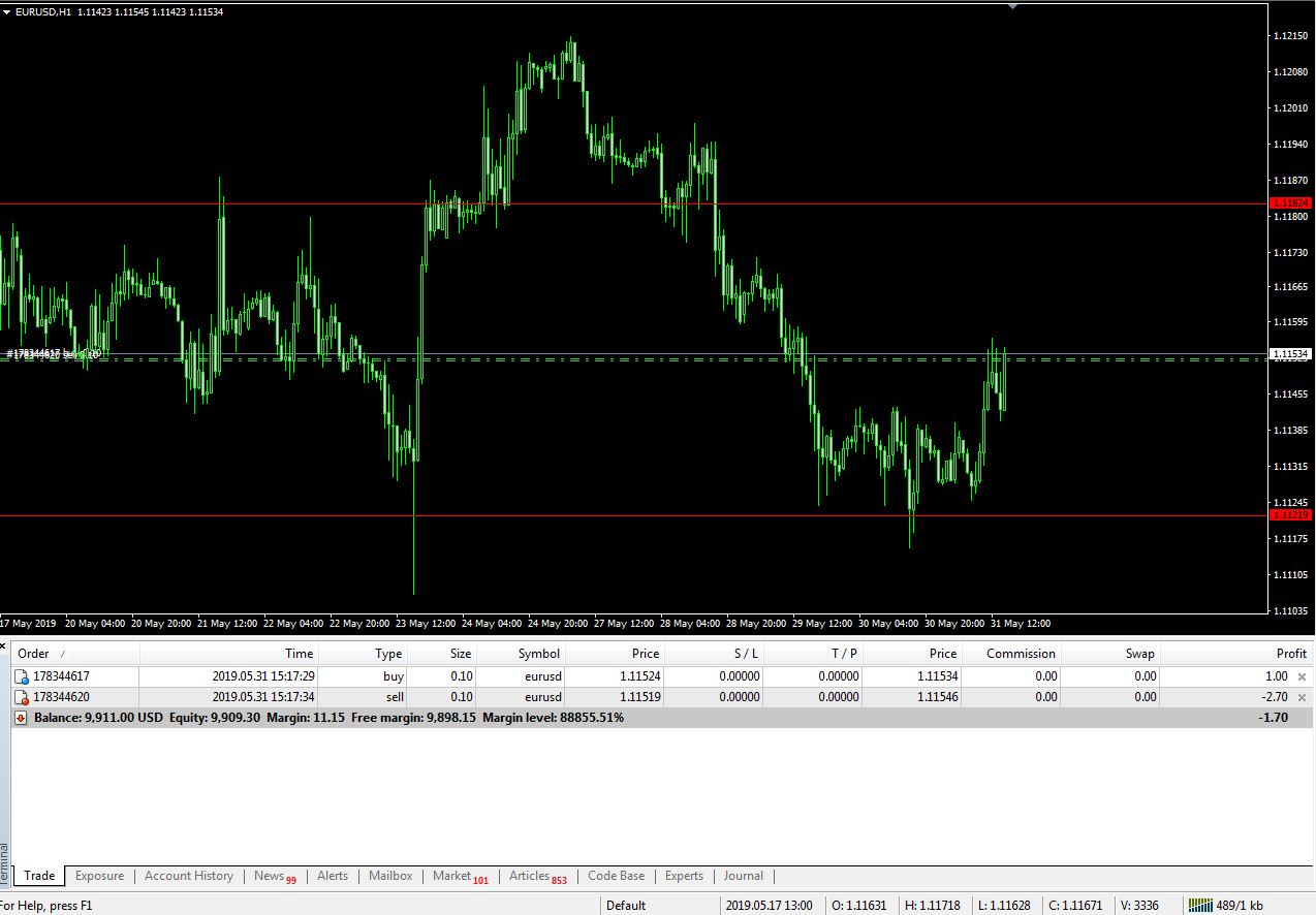 ارجوا اضافه خط احمر والتحكم فيه يديويا فوق للبيع و بدا المضاعفات عند وصول السعر له يفتح صفقه بيع و اضافه خط اخضر تحت للشراء والعكس صحيح