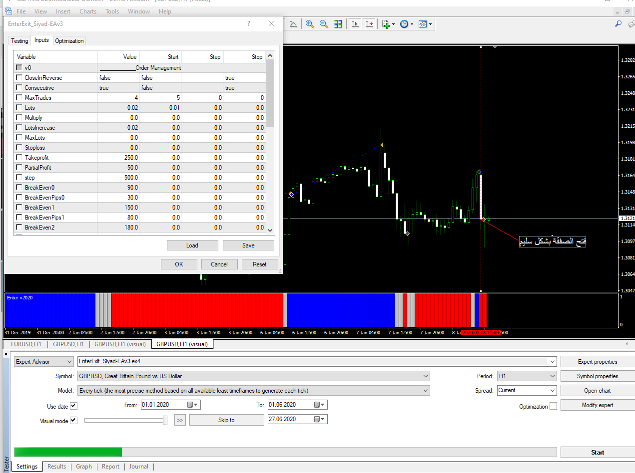 صورة توضيح فتح الصفقات بشكل سليم بعد قفل خاصية اغلاق الصفقة عند انعكاس الاشارة