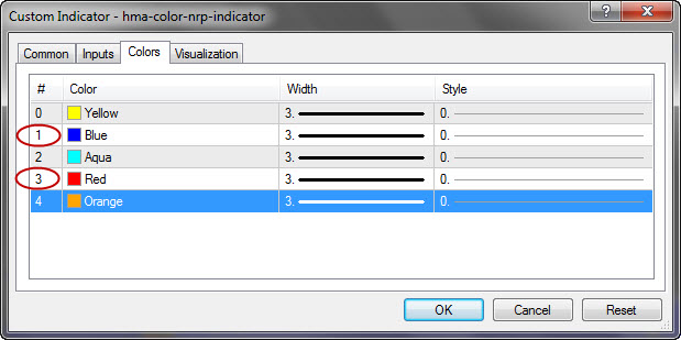 يوجد لديك المؤشرين على الشارت ضع لكل خط لون خاص به ثم ابني عليها الشروط من جديد، لتعديلها بالاكسبيرت فلا اعلم اي الالوان تقصد بشرحك الاساسي وهي متشابهة بالمؤشر 1