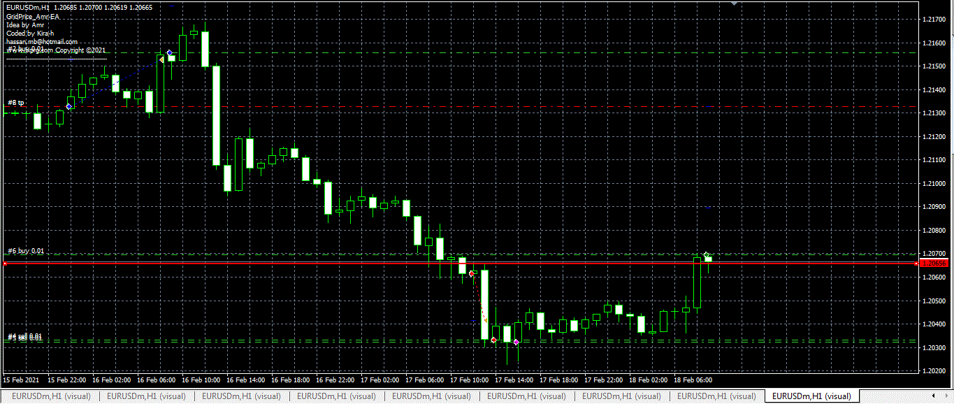 مثال بالصورة تمت تجربتها بالباك تيست وفي الديمو ايضا ( الخط الاحمر هو السعر الموضوع بالاعدادات الخارجية )