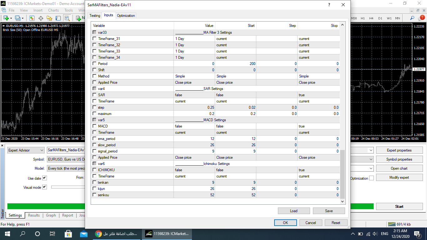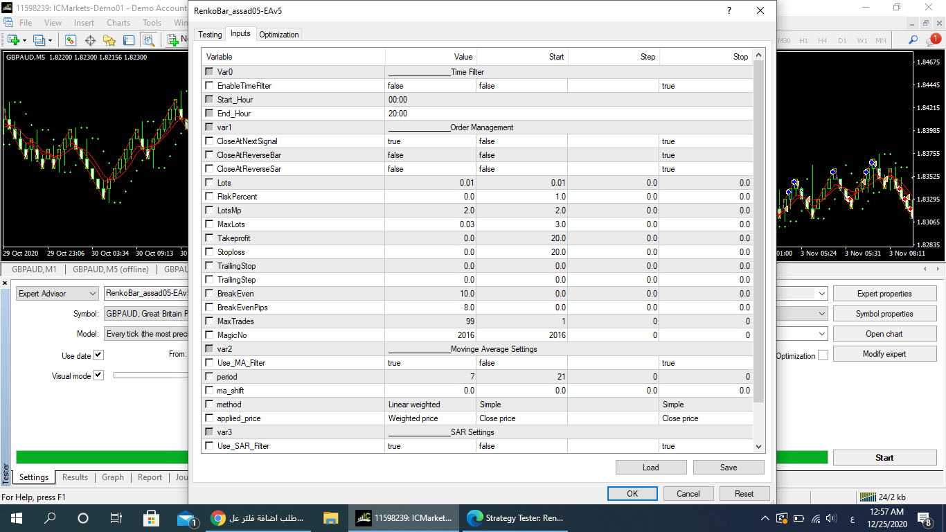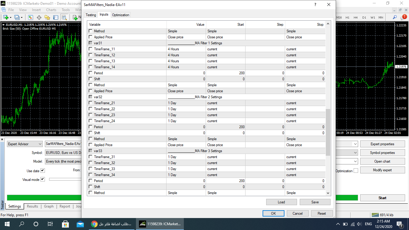 انا كنت بعمل نفس الاعدادت في الاكسبرت النسخه الي قبل قبل دي وكان بيبيع ويشتري بنفس الاعدادت الفلتره 200 سمبل 4 ساعات والباقي يوم