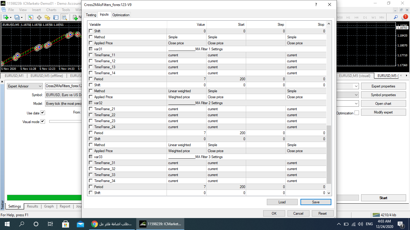 المهم انا هتجنن كنت واعمل نفس الخواص دي في الاكسبرت الي فيه كل الفلاتر داه بحيث يبقي عندي كل الاستراتيجيات في اكسبرت واحد
