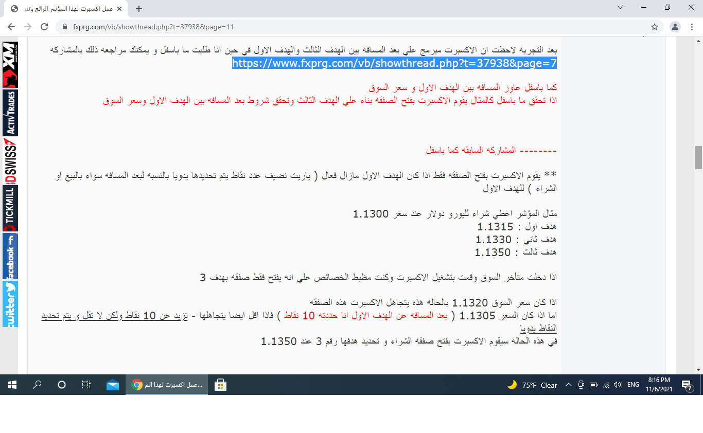 اما اذا كان السعر 1.1305 ( بعد المسافه عن الهدف الاول انا حددته 10 نقاط ) فاذا اقل ايضا يتجاهلها - تزيد عن 10 نقاط ولكن لا تقل و يتم تحديد النقاط يدويا