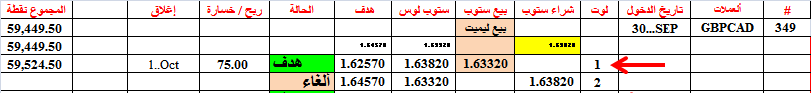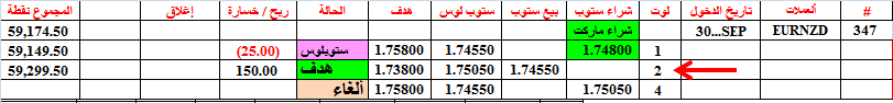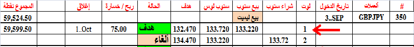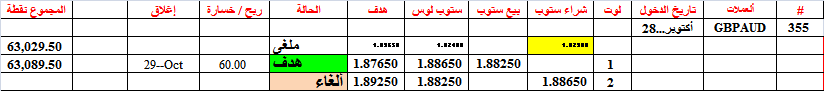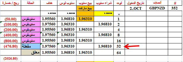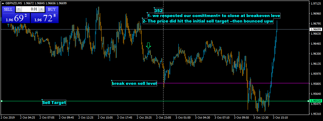 أغلقنا الصفقة 352 عند التعادل ولكن بفرق ضئيل سببه دقة عدد الكسر العشري