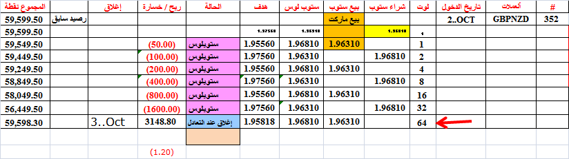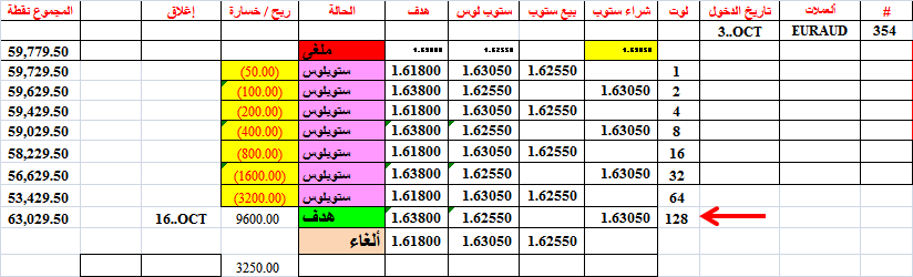 في الصفقة 352-- وصلنا الى بيع 64 لوت--مما يستوجب الأغلاق عند التعادل--