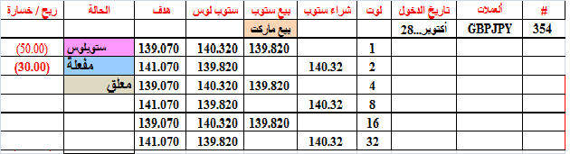 ما زال لدينا الصفقة 354 مفعلة--و تعرضت لعدة ذبذبات بسبب تذبذب اليورو