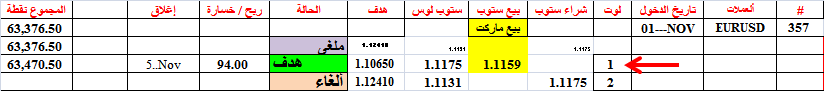 حققت الصفقة 367 هدف شراء 4 لوت--و أعطت ربحا جيدا