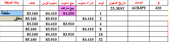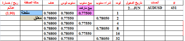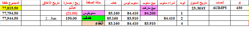 حال الصفقة 430-- وصل السعر الى جوار الهدف و ارتد منه نزولا