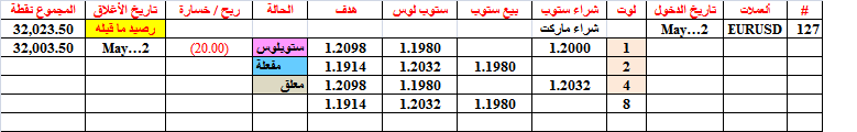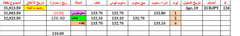 حققت الصفقة 126 هدفها عند بيع 2 لوت--و أغلقت على هذا الربح