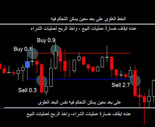 وأيضا على بعد معين من اللو يوضع أخذ الربح للبيع وايقاف الخسارة للشراء .