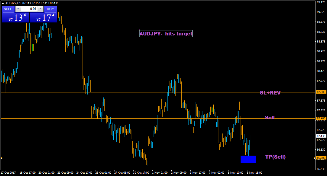 أما الصفقة استرالي ين -- فالسعر يبعد 12ن عن هدف البيع-- ربما قد نغلقها قبل ان تصل الى الهدف