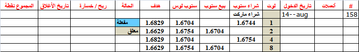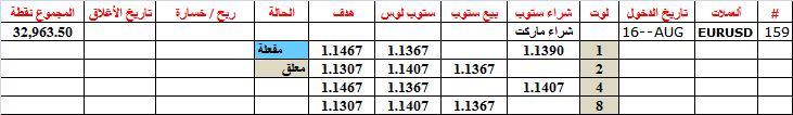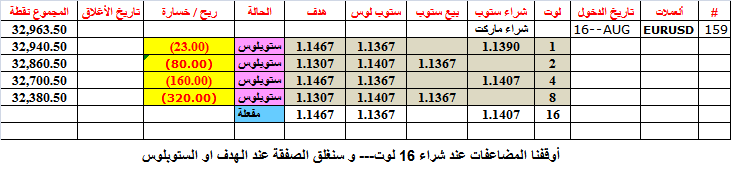 و سنوقف المضاعفات عند إغلاق الشراء 16لوت على ربح او خسارة --لنبدأ بعدها من جديد