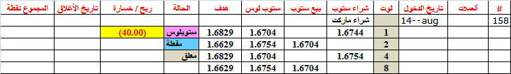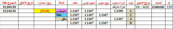 أغلقنا الصفقة 147 تحت خسارة و ذلك عند شراء 32 لوت