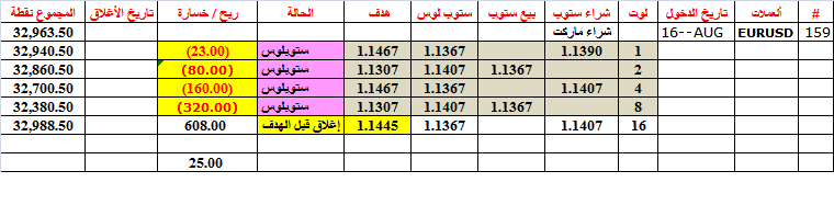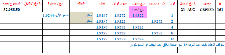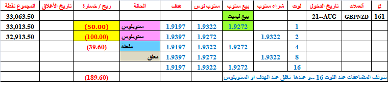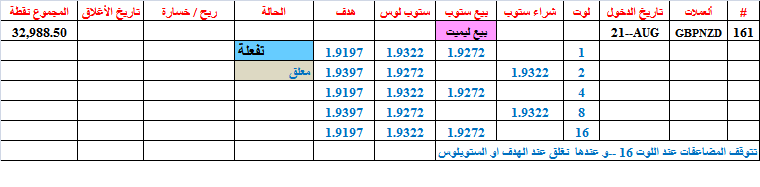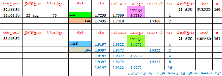 Eurnzd=160--- حققت هدفها عند بيع 1 لوت--أغلقت