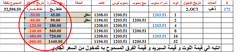 جدول يظهر قيمة ربح و قيمة الخسارة لكل مضاعفةملف مرفق 9434