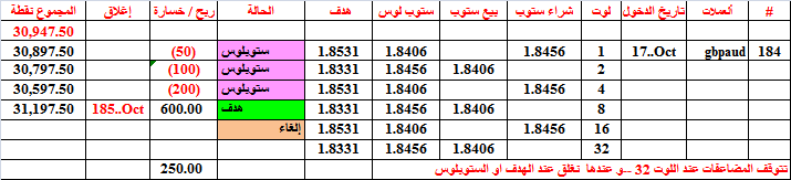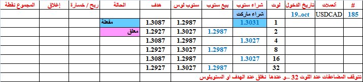 أغلقنا البوند عند 1.3085 اي قبل الهدف بقليل و مع ربح جيد