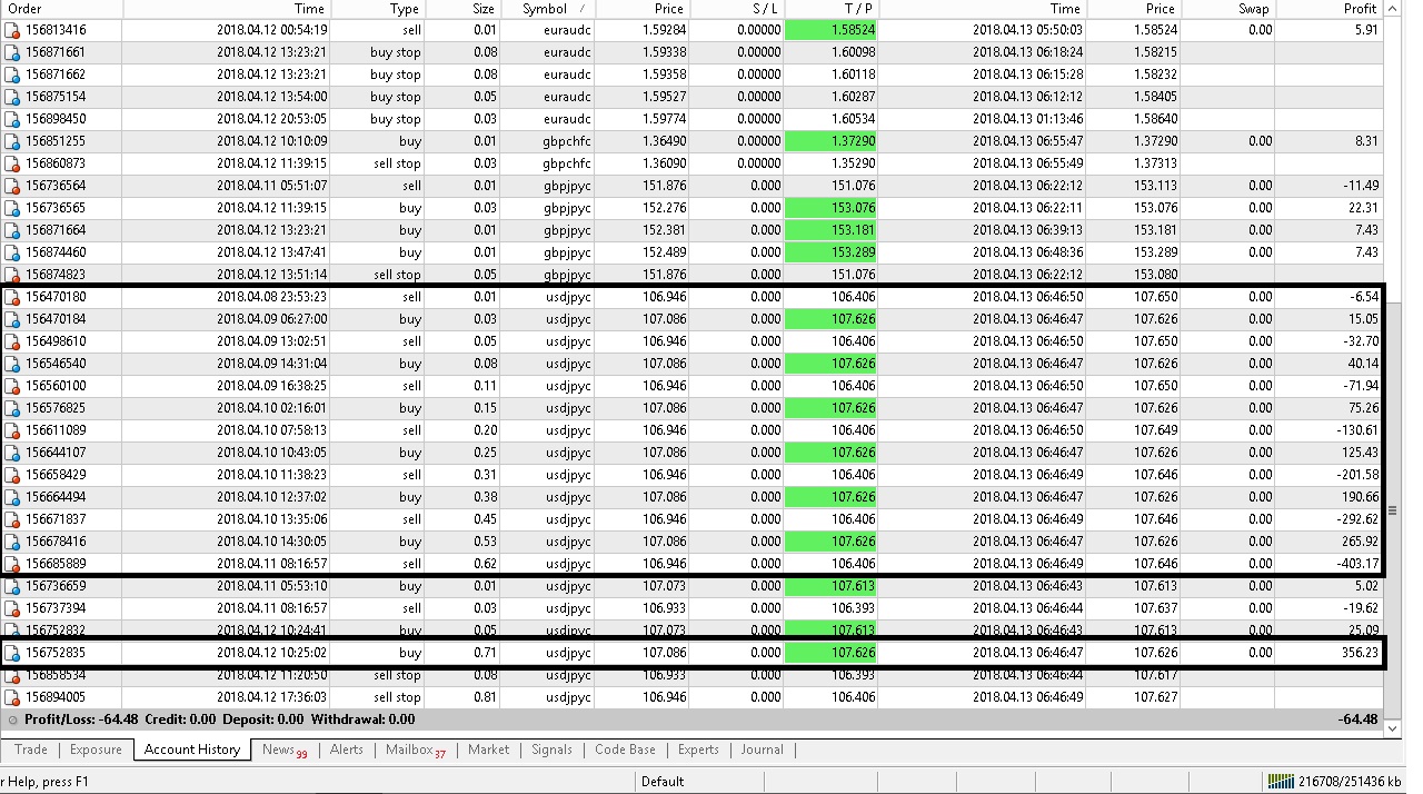 لانه بعد إختبار الاكسبيرت على جميع الازواج بما فيهم الذهب والفضة على الحساب الحقيقي تبين انه بعد تطبيق عدد متطور من المضاعفات يصبح الشراء +الشراء - البيع = اقل من الصفر اى خسارة او البيع + البيع - الشراء = اقل من الصفر كما ظهرت النتائج بالصورة التالية على زوج الدولار/ ين كالتالى :