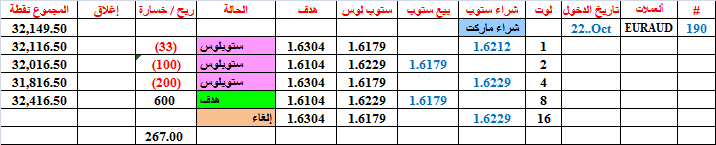 أصابت الصفقة 190 (يورو-استرالي) هدفها عند بيع 8 لوت-
