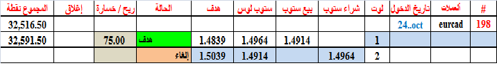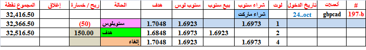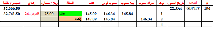 اصابت الصفقة 196 (بوند - ين ) هدفها عند بيع 1لوت