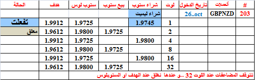 جدول المضاعفات للصفقة 203