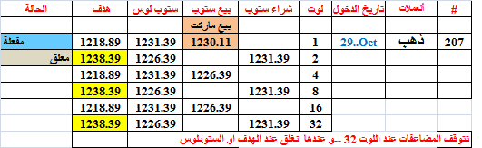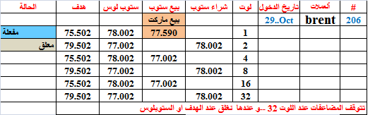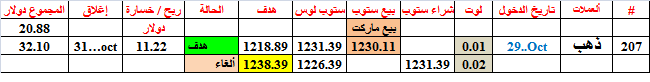 ألأخوة الكرامان نتائج صفقات الذهب و البرنت ستكون ظاهرة بالدولار و ليس بالنقطةو سنخصص جدولا مستقلا لهمااما باقي العملات فالنتائج ستستمر بالنقطةأصابت الصفقة 206 هدفها عند بيع 1 لوتالأرباح بالدولار و ليس بالنقاطتحيات