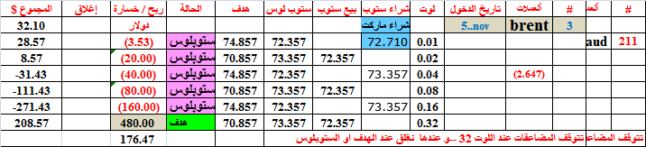 أصابت صفقة البرنت رقم 3 هدفها عند بيع 0.32 لوت--أغلقت على ربح حرزان بالدولار و ليس بالنقاط
