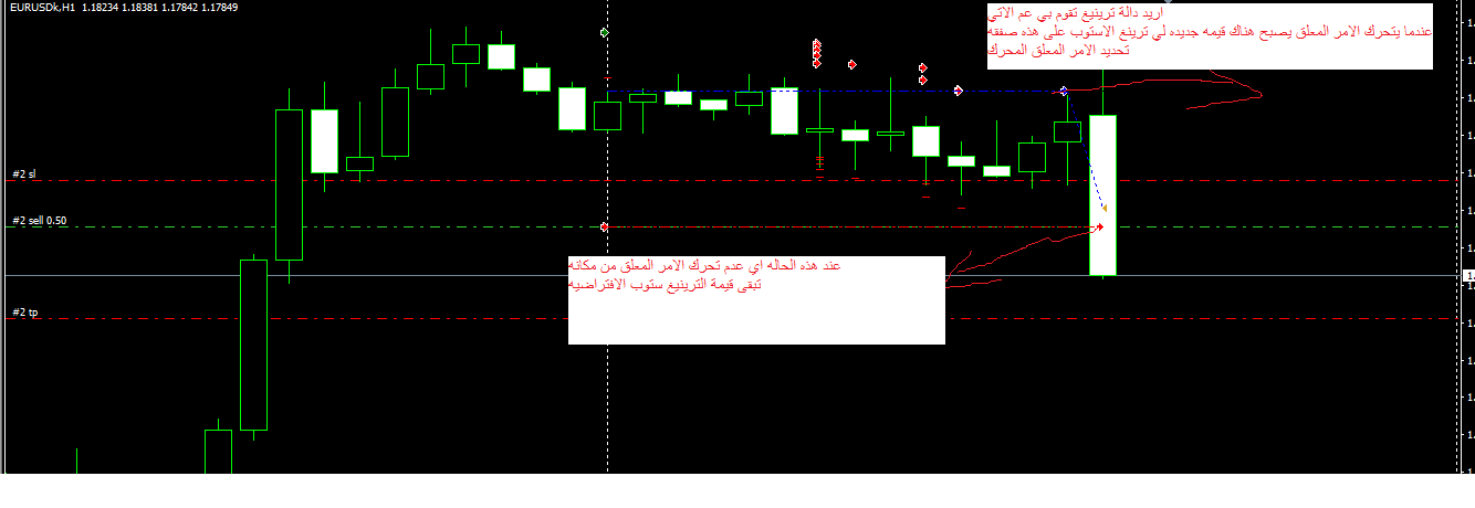 ثم نضع دالة التريلينغ بدلالة قيمة الترلينغ :