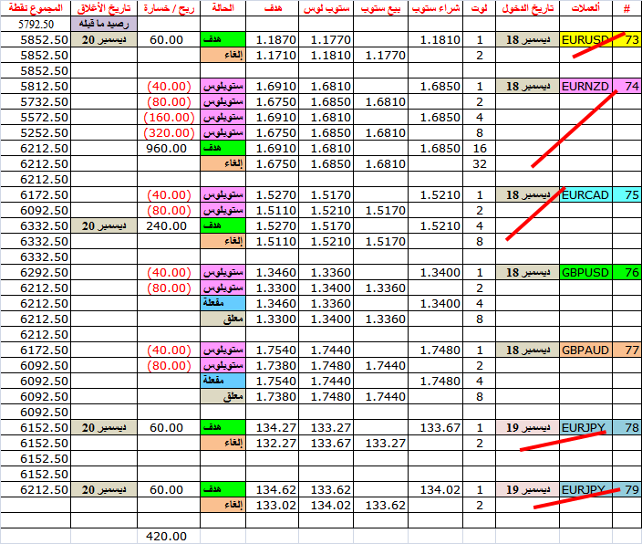 صفقة جديدة 78--يورو ين -- التشغيل يدويا-- لأن الدخول من عند ليميت و ليس ستوب