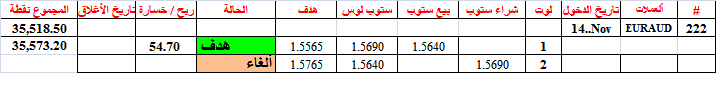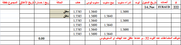 #222 euraud أصابت هدف البيع عند 1 لوت