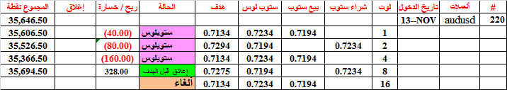 قررنا إغلاق الصفقة 220 قبل الهدف بقليل بسبب ثقل المضاعفة 8 لوتات-- و كان الربح أكثر من مقبول