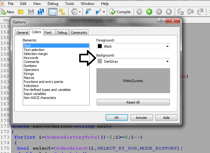 نعم يمكن تغيير لون الخلفية من خلال : Tools => Options