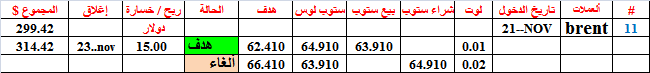 Brent#11-- أصابت هدفالبيع ب 0.01 لوت و أعطت ربح 15$