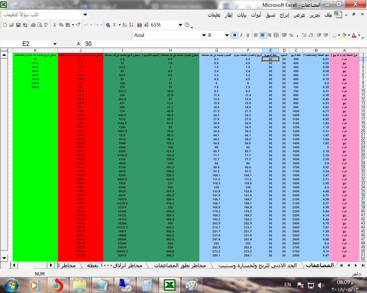 -مرفق صورة من شيت الاكسل الذى هو معمل تجاربي للربح بطريقة امنه للحساب باستخدام الاكسبرت الذى اعدده لنا مستر كيرا او اكسبرت اخونا عبد النور متعدد الاهداف المرفق هنا بعد تعديله واصلاحه ايضا وارجوا من الجميع عدم العمل على الحساب الحقيقي الا عندما نصل هنا الى افضل الاعدادات .