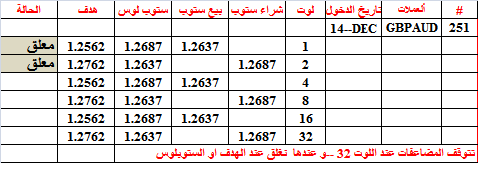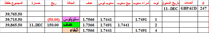 جدول الصفقة 17--- خسارة 5 او ربح 7.50 دولار لكل 0.01 لوت