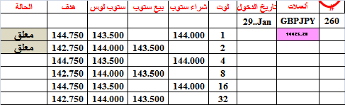ملف مرفق 11954أغلقنا الصفقة 260 (بوند ين) عند 142.80 اي قبل الهدف بقليل لأننا وصلنا الى المضاعفة 8 لوت بزمن قصير جدا
