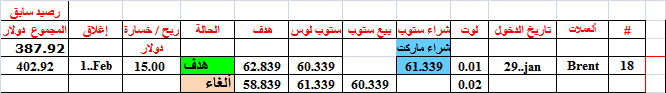 حققت صفقة النفط برنت (18) هدفها عند شراء 0.01 لوت فحققت معه ربح 15$