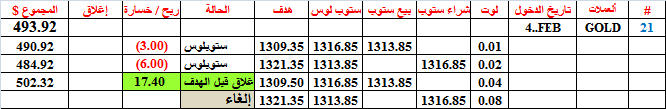 ان ارباح و خسائر صفقات الذهب او النفط هي بالدولار و ليست بالنقاط كما تظهر في الجدول-