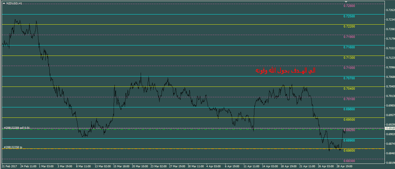 سأدخل بيع هدفي الاول (0.68600) بحول الله وقوته