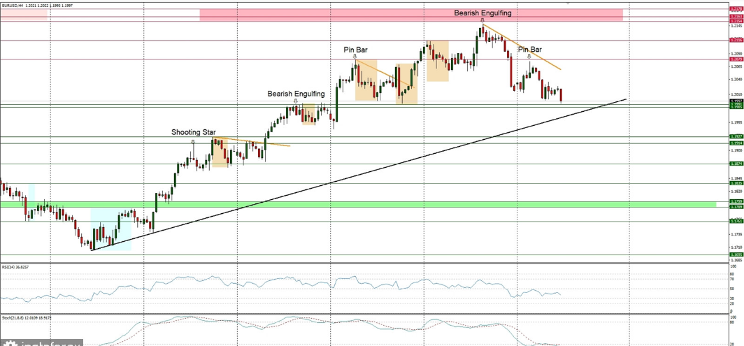 في الفترة ما بين 15 يناير - 20 يناير ، تم تحقيق إغلاق هبوطي واستمرار ما دون 1.2160. وساعد هذا على إجهاض الزخم الصعودي المستمر. سمح للحركة الهبوطية السريعة بالمتابعة نحو 1.2050 وكذلك 1.2000 والتي فشلت في ممارسة ضغط صعودي كافٍ. كان الافتقار إلى الزخم الصعودي واضحًا منذ ذلك الحين. ولهذا السبب ، كنا ننتظر نموذج استمراري هبوطي. مع ذلك ، فقد استمر الصعود الأخير فوق 1.2150 - 1.2175 (الجانب الخلفي من حدود القناة المكسورة) حيث كان الرفض الهبوطي متوقعًا مسبقًا. كان من المتوقع استمرار المزيد من الانخفاض نحو 1.1960 و 1.1850 اللذين تم اختبارهما مؤخرًا. تم التعبير عن حركة صعودية على المدى القصير لإعادة اختبار سريع حول 1.1970-1.2000 (مستويات فيبوناتشي) والتي شكلت منطقة إمداد مهمة كما هو متوقع. من المتوقع أن يستمر الاتجاه الهبوطي نحو 1.1830 و 1.1720 على المدى القصير طالما يحافظ الزوج على حركته أدنى 1.2000.
