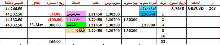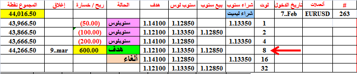 حالة صفقة اليورو (263)القديمة و المفتوحة منذ فبراير 7-- ويوم الجمعة الفائت اصابت هدف الشراء ل 8 لوتات لتحقق ربحا كبيرا
