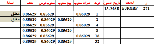أغلقنا الصفقة يورو-بوند رقم 267 عند شراء 8 لوتات بسعر 0.8655 اي قبل الهدف بقليل
