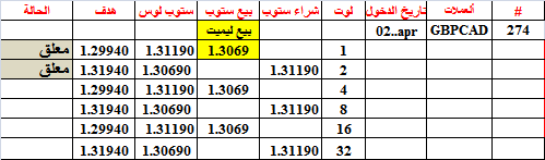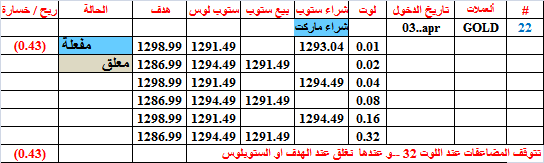 نحن الآن في المضاعفة شراء 32 لوت-- و هذا ليس بالكثير--انما سنكتفي بإغلاق قبل الهدف او بربح اكثر من التعادل بقليل