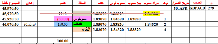 صفقة جديدة رقم 279--- بوند استرالي---بيع ماركت 1.8382 --هدف=1.8307