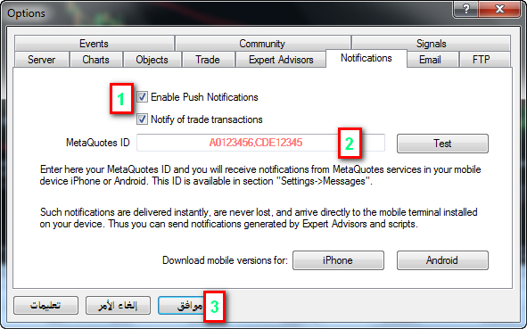 ايضا عند افتتاح اي امر معلق او افتتاح صفقة جديدة يرسلي تنبيه