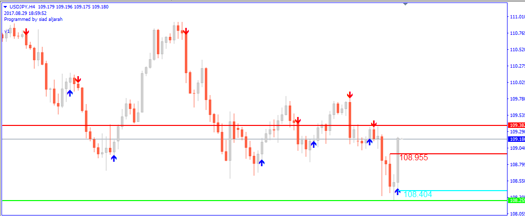 استوب اغلاق شمعة 4 ساعات تحت مستوى 108.95
