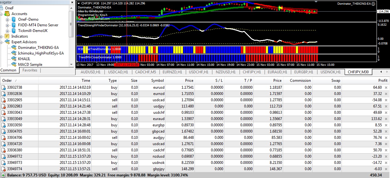 4 يتحول لون المؤشر trendSTRdominator الموجود بالشارت الى اللون الاحمر