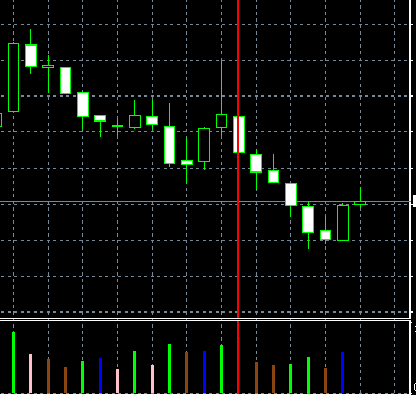 مثل الشمعة التالية كانت طيلة الوقت خضراء وهابطة ولكن قبل الاغلاق بثواني تحول لونها للازرق واغلقت زرقاء ومع ذلك المؤشر اعطى تنبيه