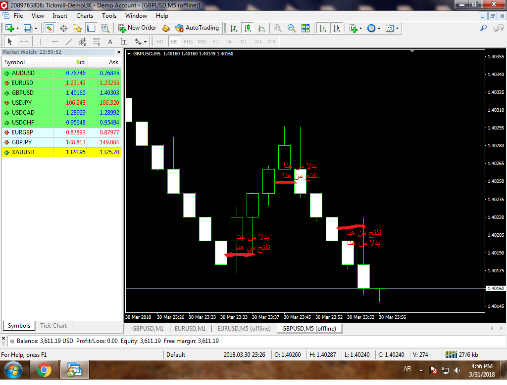 - في الصورة المرفقة الشمعة رقم 1 لنفترض ان الشمعة اغلقت على شراء