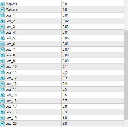 الثانية . . في حالة الخسارة يتم بدء المضاعفات الى ان تغلق احد الصفقات بربح ثم يبدا من اللوت البدائي