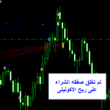 ولاكن الذى حدث انه تم اغلاق جميع صفقات البيع فقط على ربح الاكوليتى ولم يغلق صفقه الشراء وعند بقاء صفقه الشراء التى لم تغلق على الاكوليتى لم يفتح الاكسبرت اى صفقات عند لمس الخطوط وانتظر الاكسبرت تحقق تارجت صفقه الشراء واغلاقها وبعدها اشتغل عادى وفتح الصفقات من الخطوط